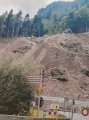 La piste d’accès à l’amont au droit de la ravine (la pelle de 40 tonnes est au sommet)